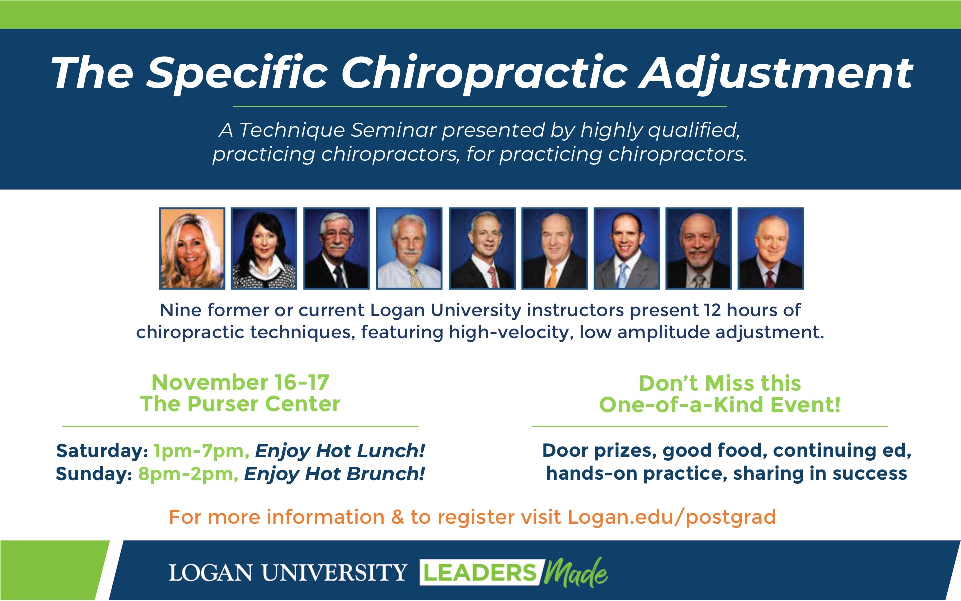 The Specific Chiropractic Adjustment Seminar Logan University College Of Chiropractic College Of Health Science Logan University